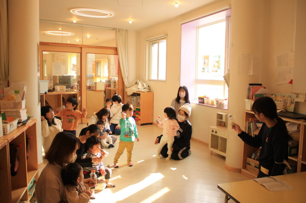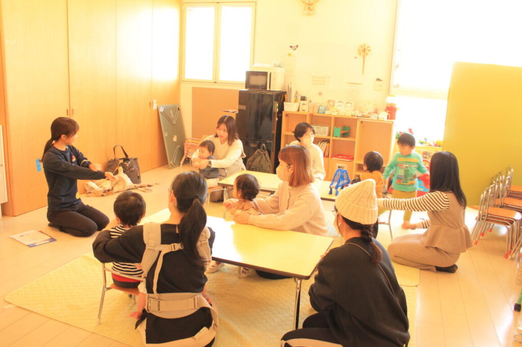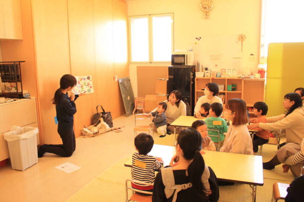 まずは秋の手遊びや歌を歌い、少し和やかになったところで、自己紹介をして頂きました。みなさん、子どもさんのことなどを、笑顔で答えて下さり、お家での様子を垣間見ることが出来うれしかったです。(*^▽^*)