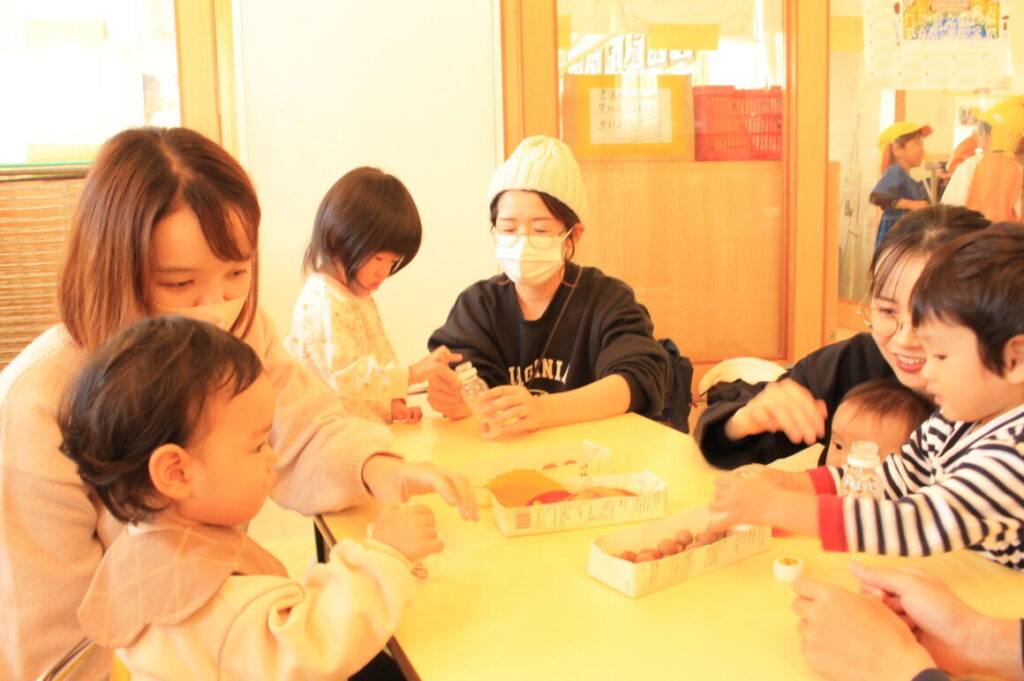 11月27日(木)10時~園内で11月の予約園庭開放がありました。今月は「自然物で楽器を作ろう!」で、8組の…