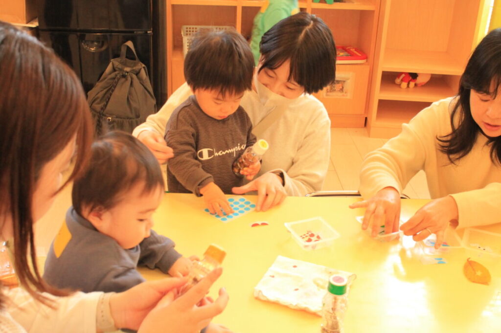 お家の方と一緒にお話したりしながらのマラカス作りは楽しいね。