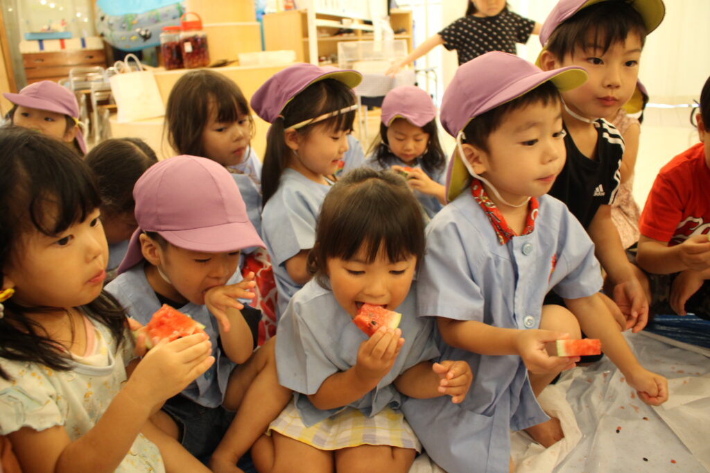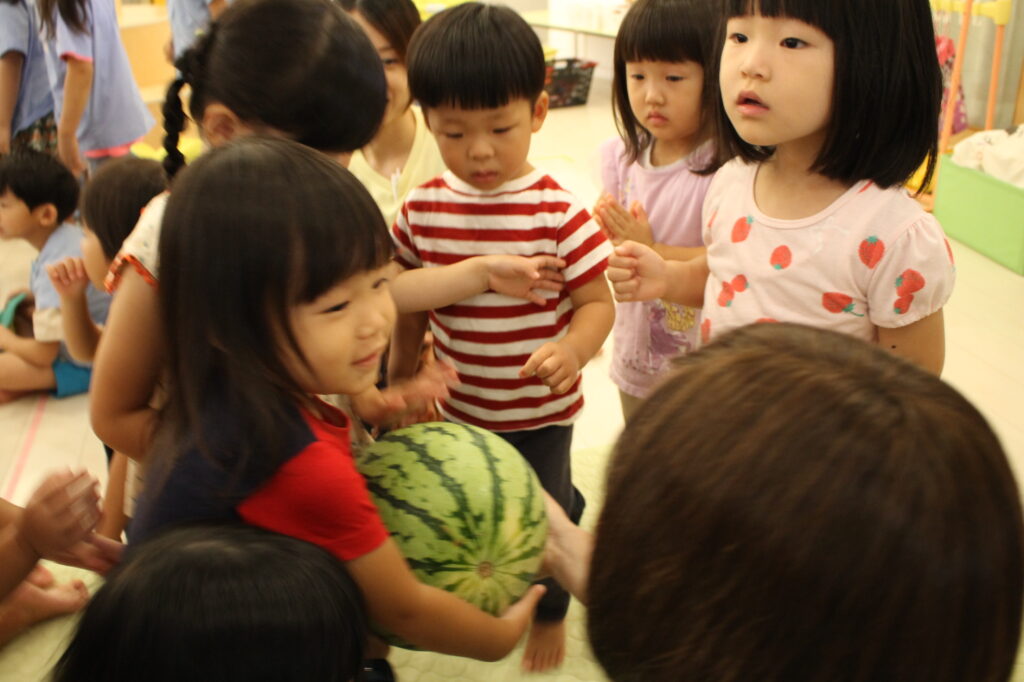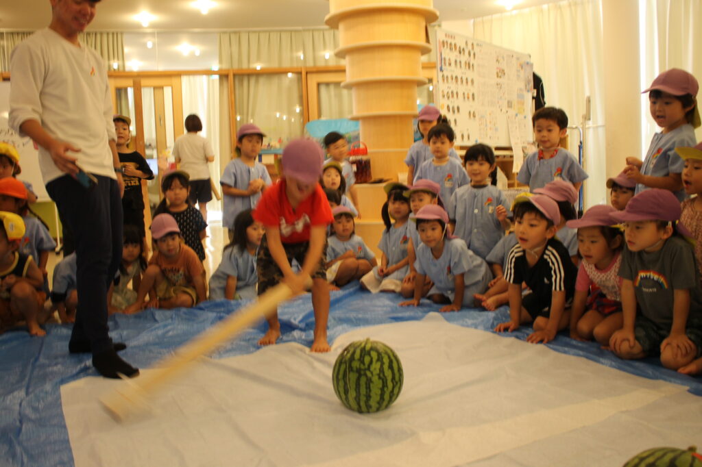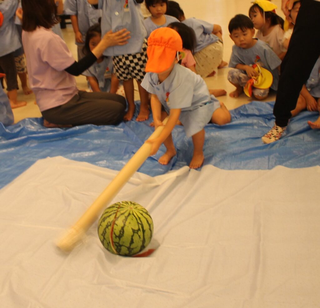 各クラス1個ずつすいかを用意して、すいかわりにチャレンジしました☆