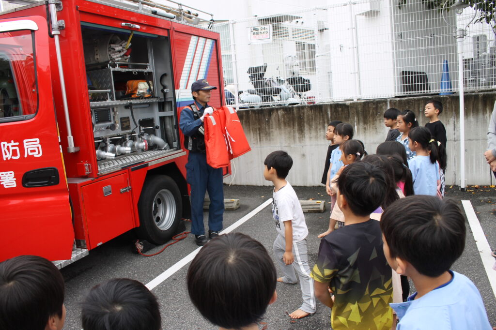 幼児クラスさんは消防車の中もいろいろ見せてもらいました!