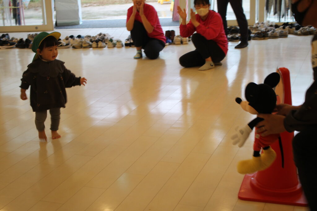 おとうさん・おかあさんの持っているおもちゃを目指して一生懸命歩いたり、ハイハイする姿がかわいかったですね💖