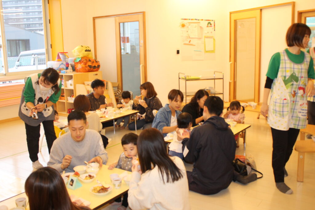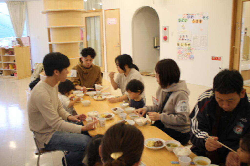 そして、がんばったあとはお父さん、お母さんと一緒の給食タイム🥄