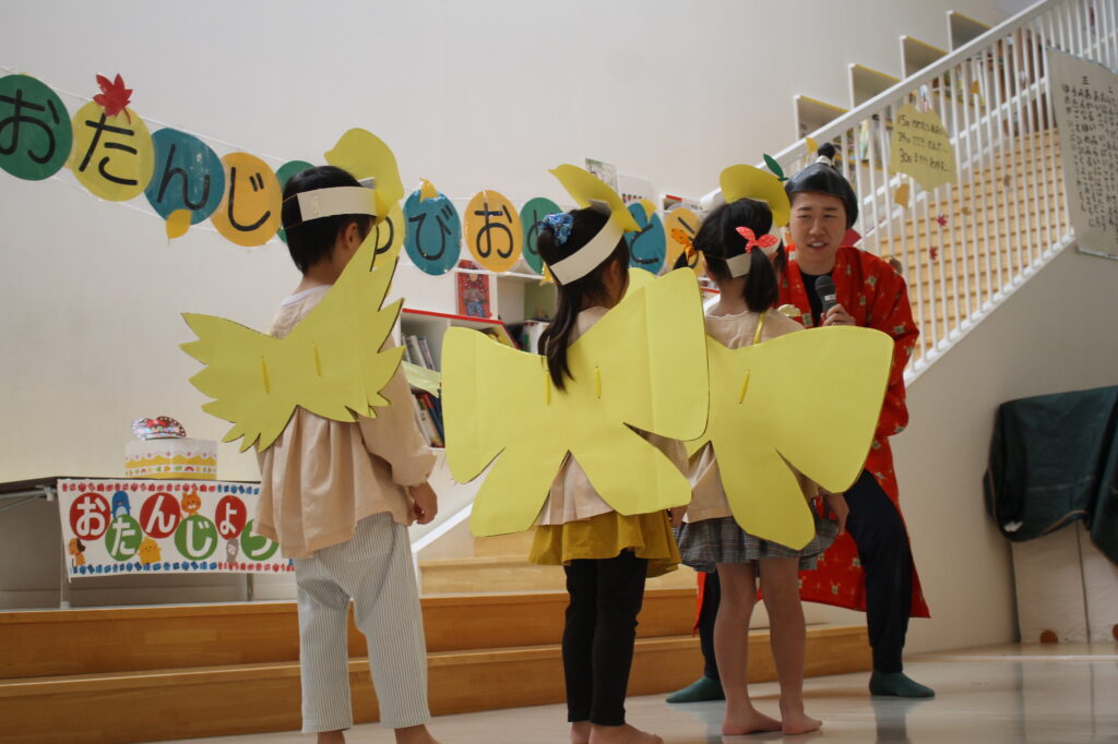 その後は、園長先生からプレゼントをもらい、みんなからお歌のプレゼントをもらいました♪