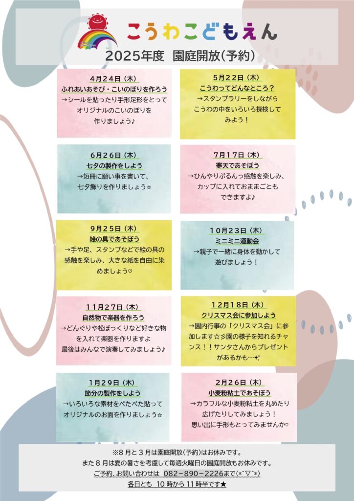 本日11月25日(火)の園庭開放は 雨天のためお休みとさせていただきます。 また来週お待ちしております(^^…