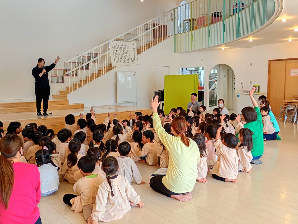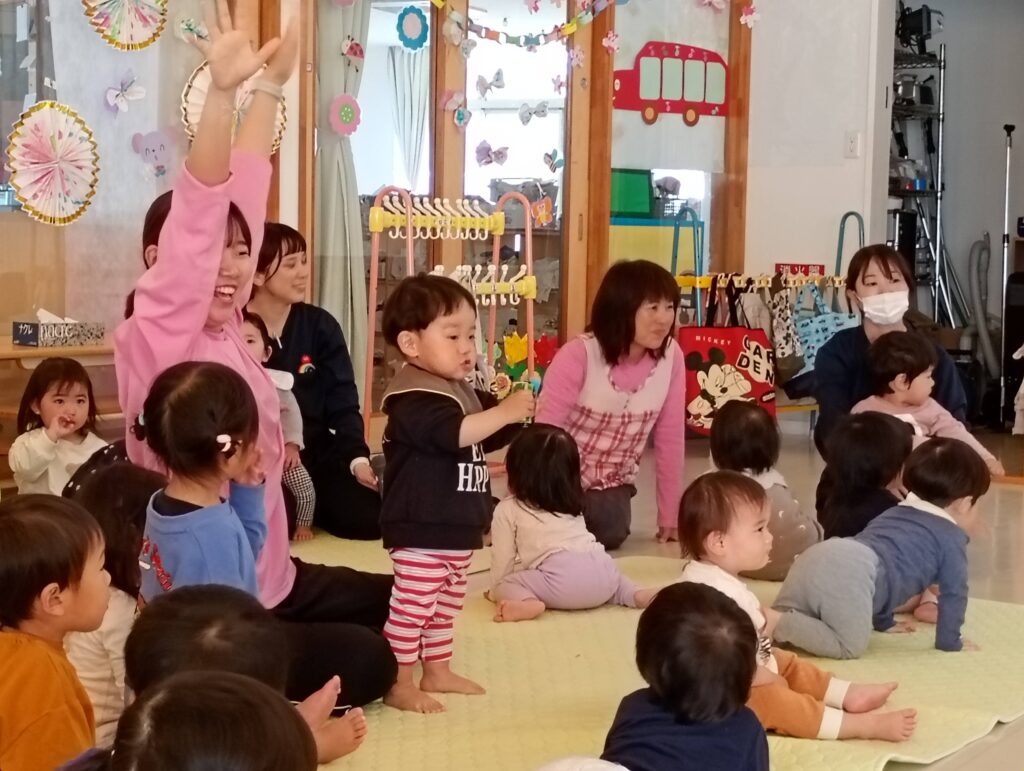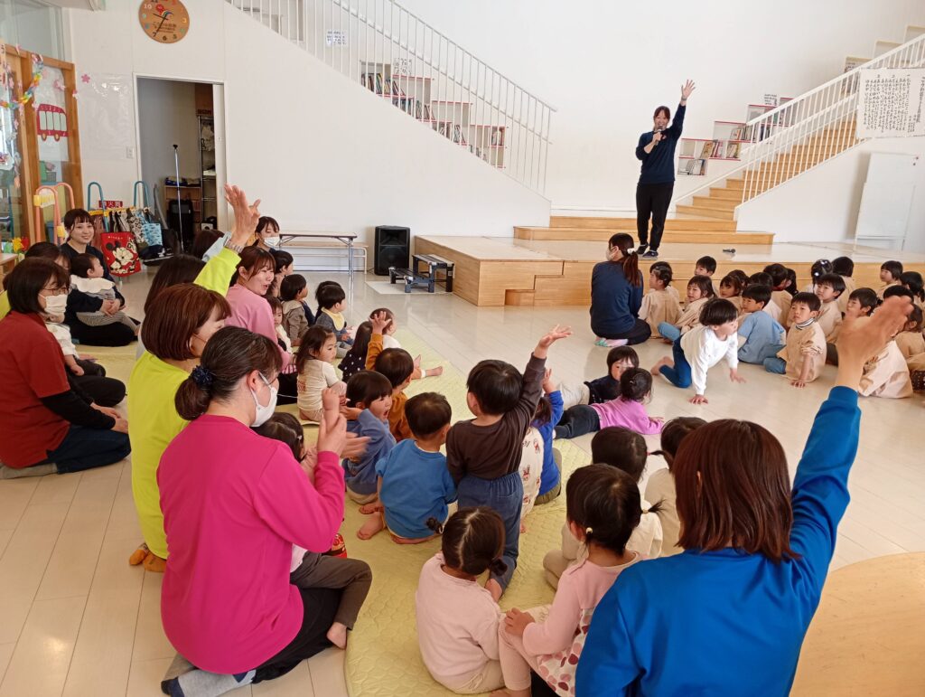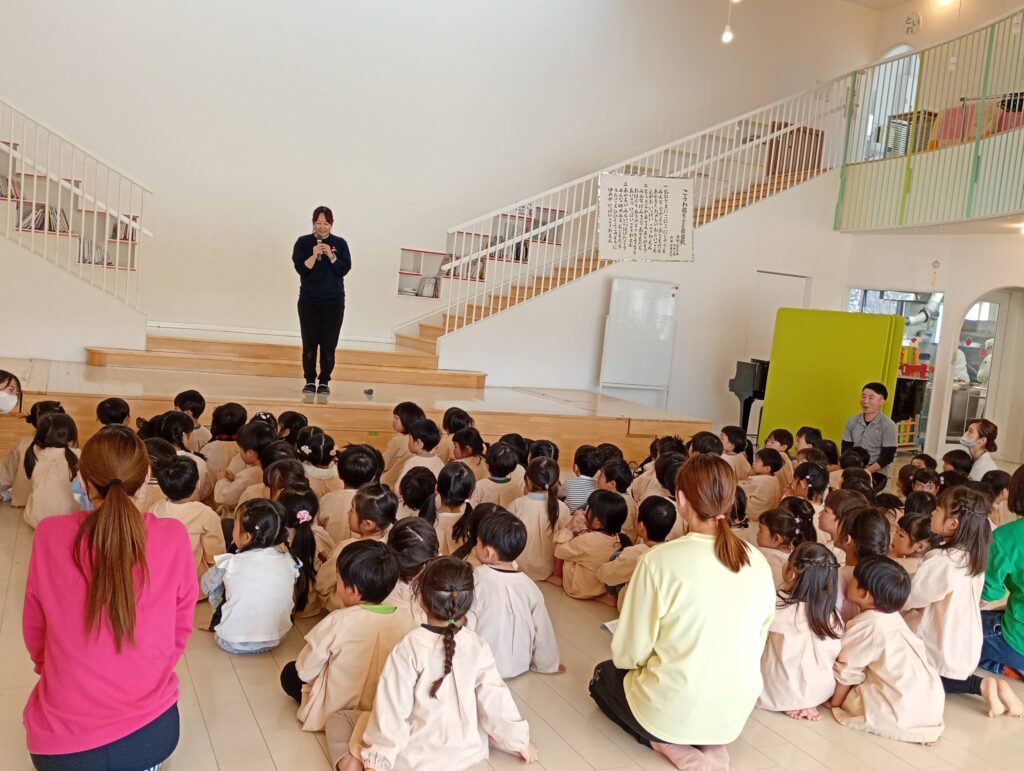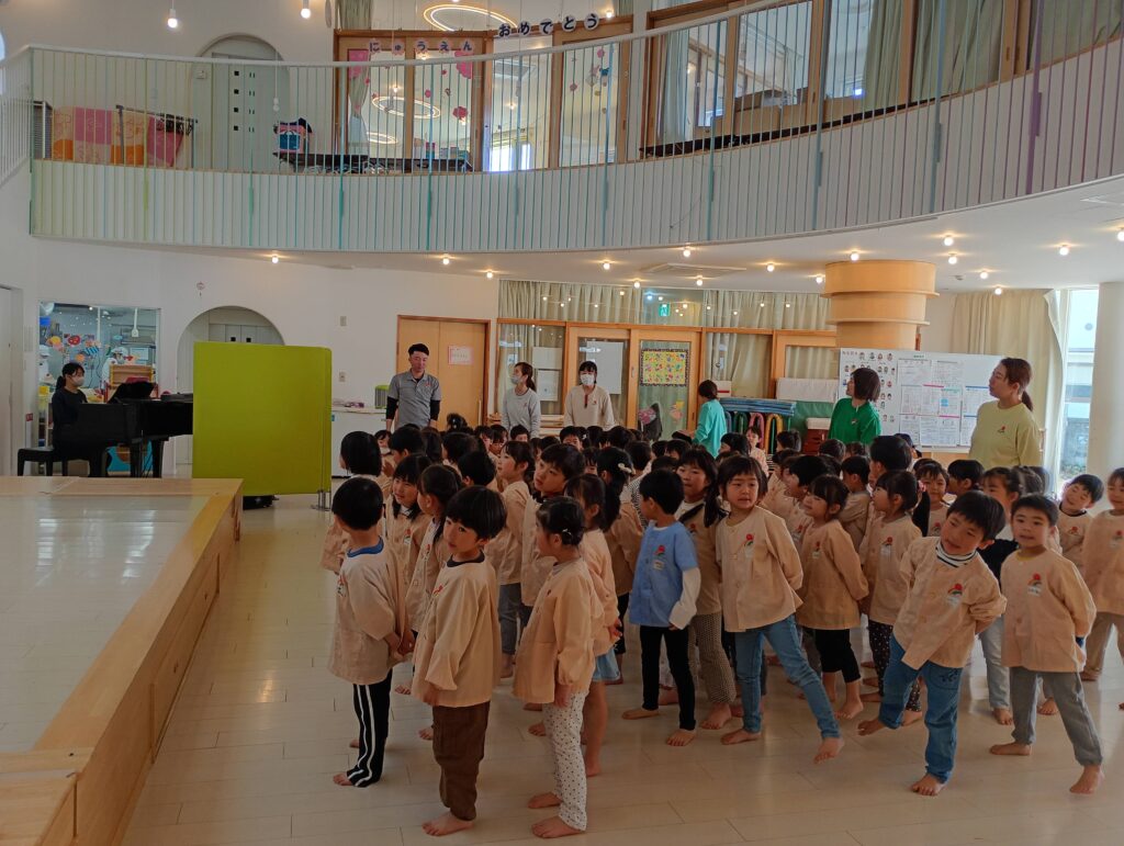 園長先生から、クラスごとにお名前を呼ばれると元気に「は~い!!」と手を挙げる2歳児クラスさん👏👏