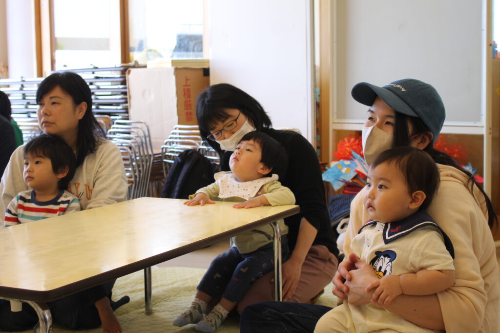 ちょっと動いた後は、「こいのぼり」 の紙芝居を読んでもらいました。大きなこいのぼりが出てくるお話に釘付けです👏
