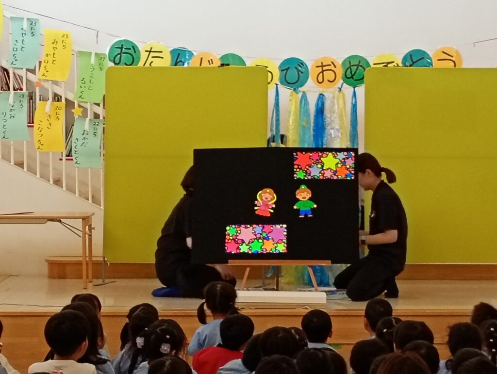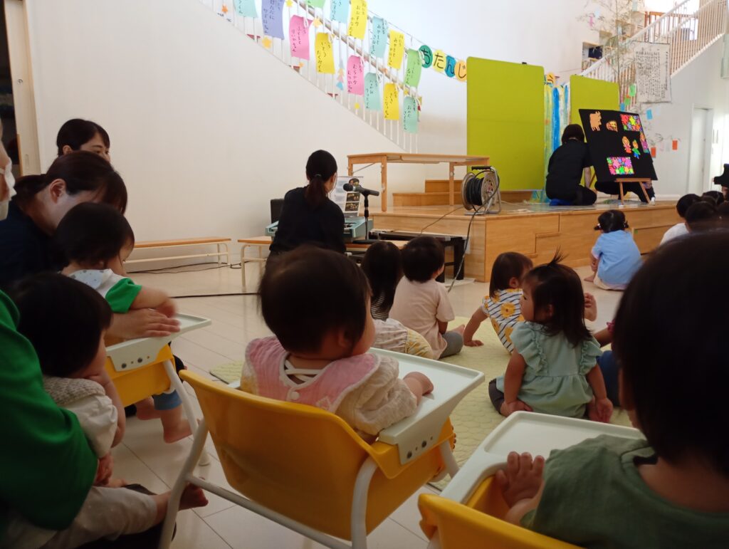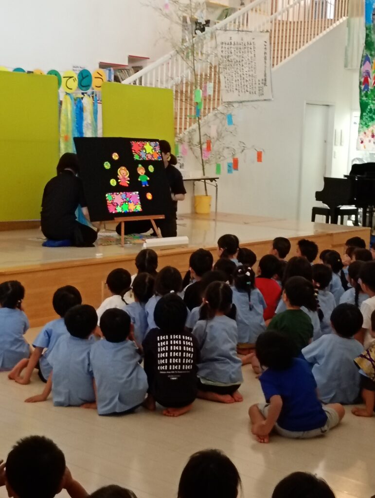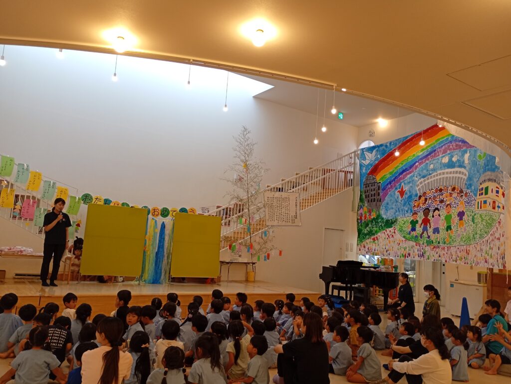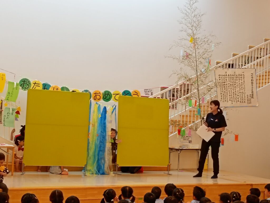 7月7日(月)に7月生まれのお誕生日会と七夕会がありました。七夕の日ということもあり、ホールには笹やみんなの願いごとが飾られており、七夕の雰囲気いっぱいで始まりました。🎋