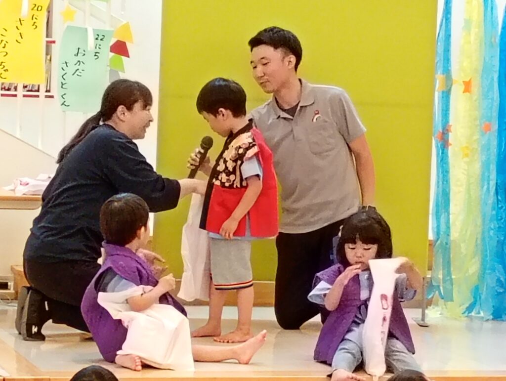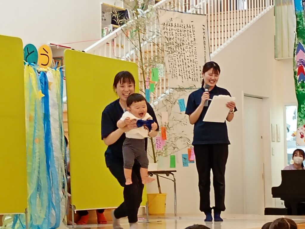 1歳になったお友だちは・・・・・無事天の川を先生と一緒にくぐり、みんなが見ている前でも泣かずにニコッ(⌒∇⌒) お兄ちゃんお姉ちゃんに「可愛い~💓」とたくさん拍手をもらいました👏👏