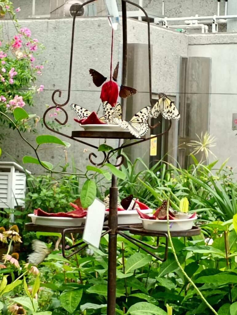 お皿に美味しい蜜があるのか、たくさんのちょうちょが蜜を吸いにきていました🦋