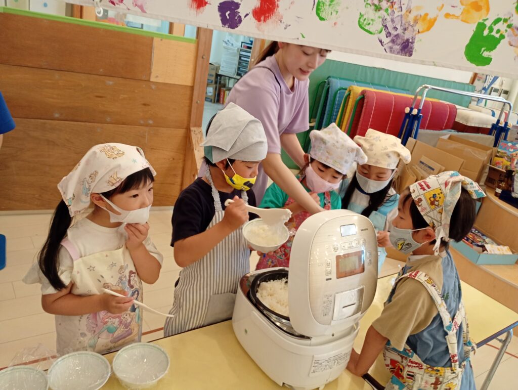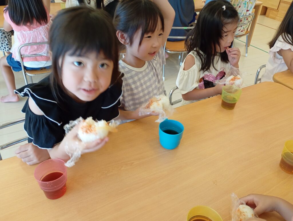 今度は自分でおむすびを握ります。初めて握るおむすびはどんな味かな・・・・・??