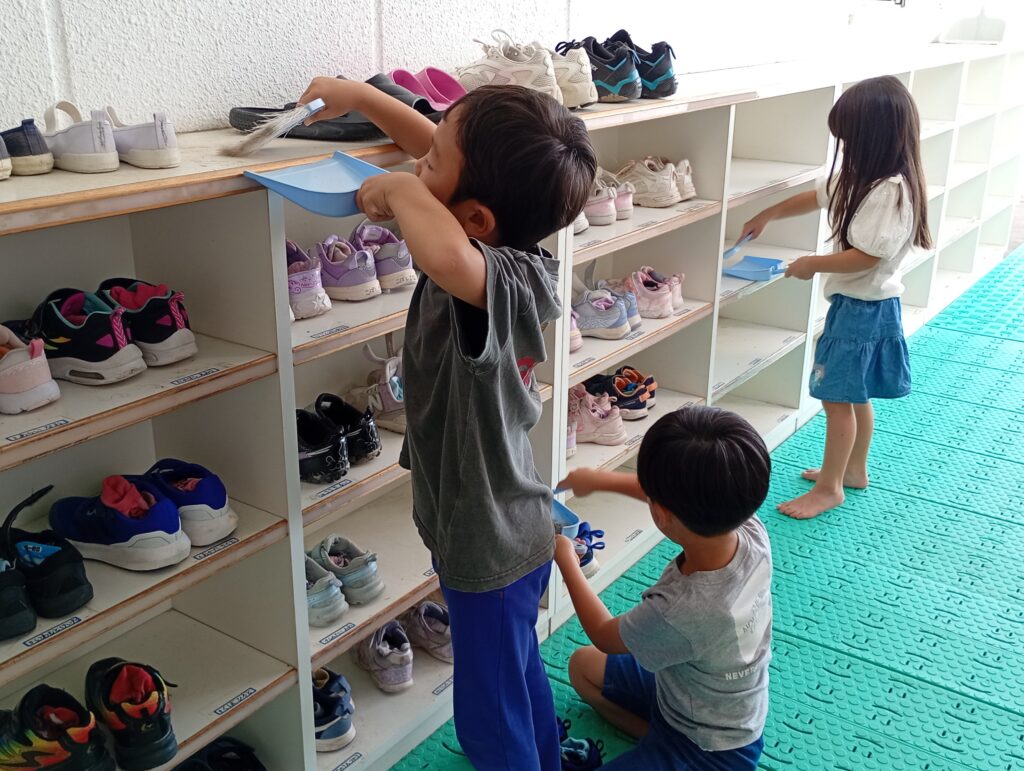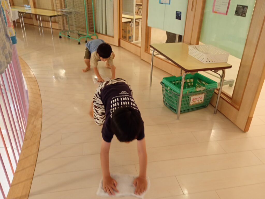 朝のお仕事はまず自分の使ったタオルをたたむこと。みんな自分のタオルを上手にたたんでいますね👏👏