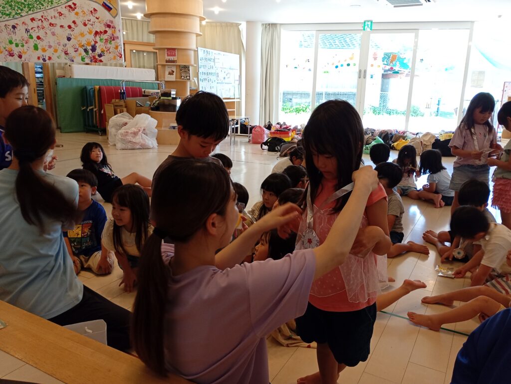 そしていよいよお泊り保育最後の時間となりました。先生たちからお泊り保育のご褒美、お手紙付きのメダルプレゼントの説明がありました。