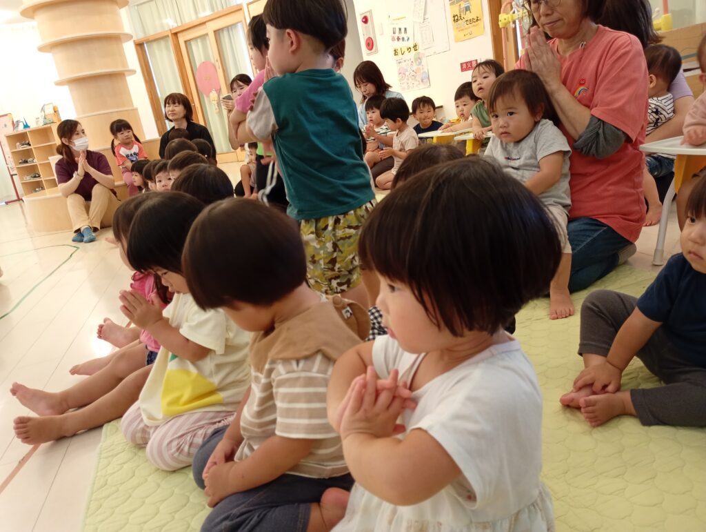 小さい乳児クラスも参加🐰🐣し、静かにお話を聞くことが出来ました。
