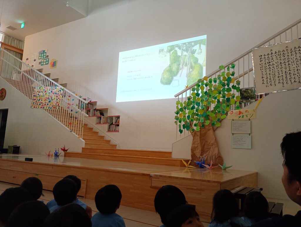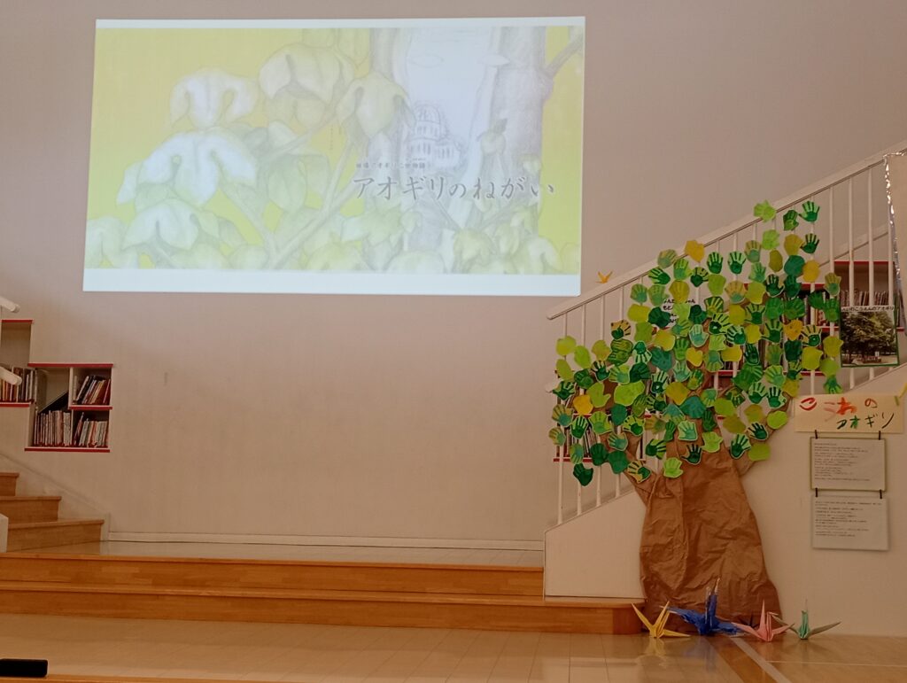 黙祷の後は、「アオギリのねがい」という絵本をみんなで見ました。