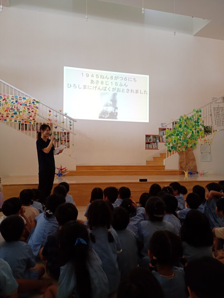 被爆80周年を迎えた8月6日(水)にホールで平和のつどいを行いました。