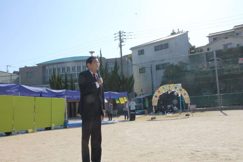 ご来賓には岸田文雄衆議院議員が応援にかけつけてくださいました。年長組さんの書道パフォーマンスを見られて「素晴らしかったです!」とお褒めの言葉を頂きました。