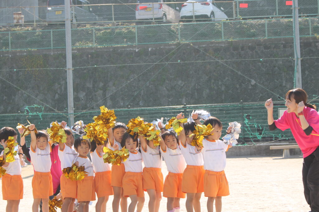 開会式では、沢山のお客さんにドキドキしている年少組さんや年中組さんがいるので、年長組さんを筆頭にみんなで息を合わせ「頑張るぞ~!!えいえいお~!」と力いっぱい大きな声で気合いを入れました。