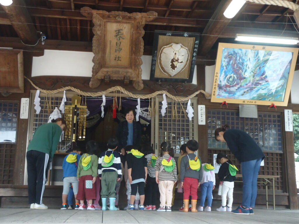 11月15日(金)、少しお天気が心配されましたが、2歳児組さん、幼児組さんで春日神社に七五三詣りに行ってきました。
