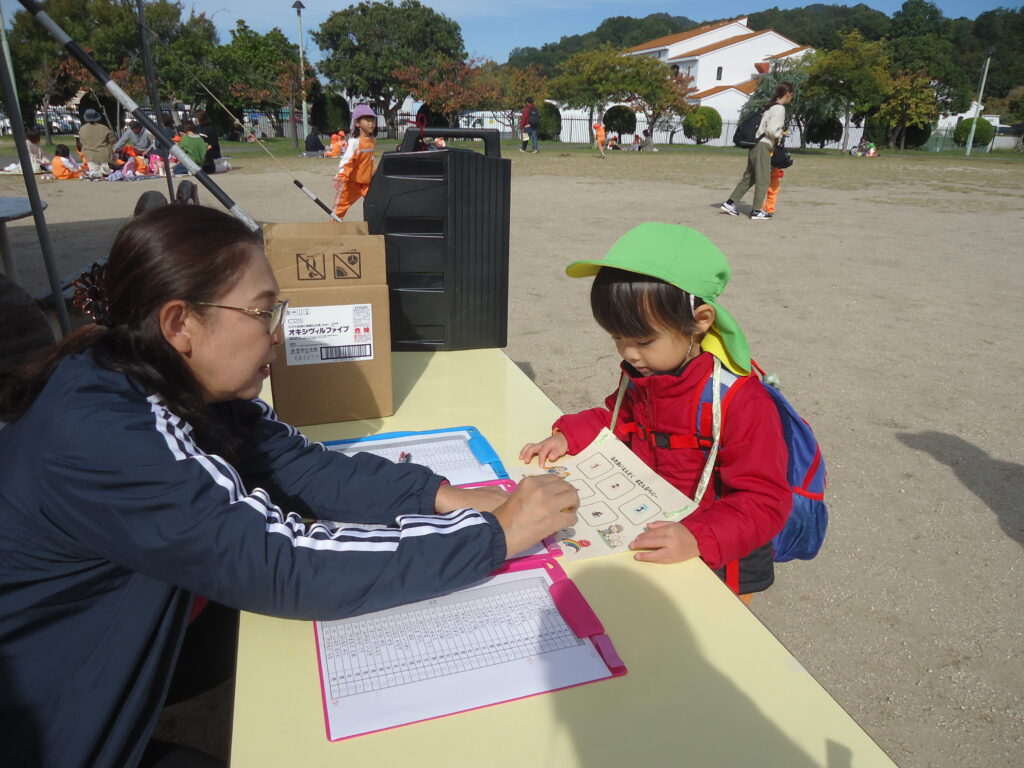 お家の方と一緒に「おはようございます!」と元気な声があちらこちらから、たくさん聞こえた後は、みんなでスタンプラリー!!