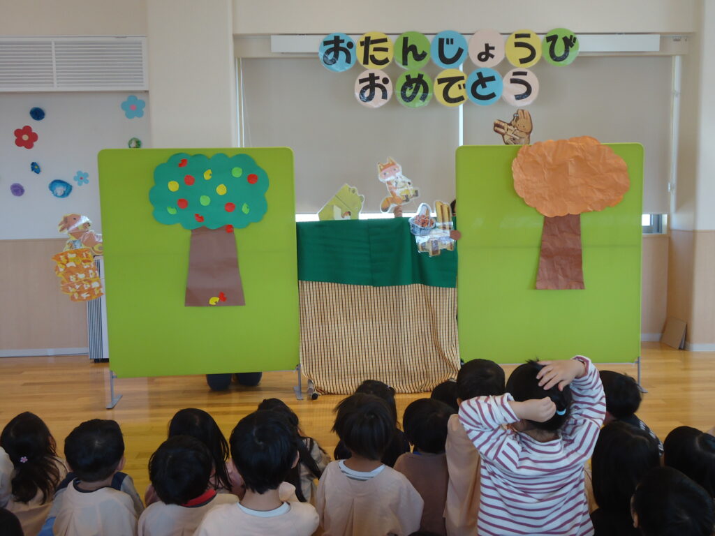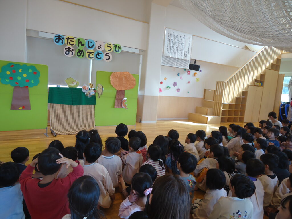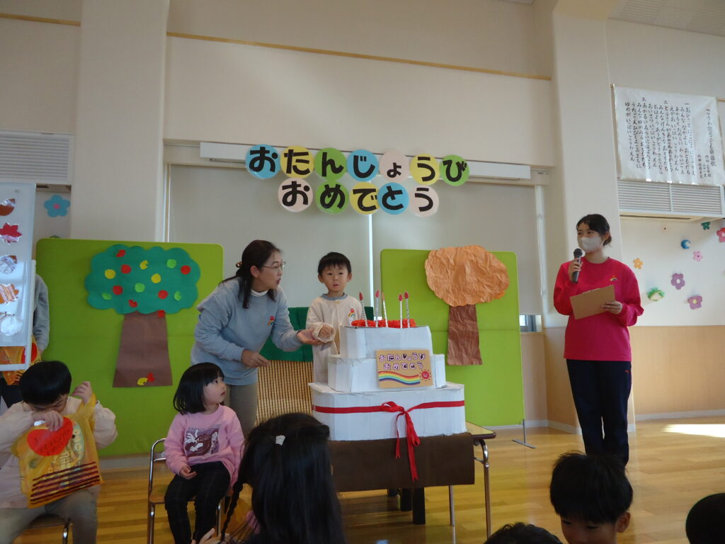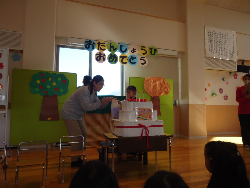 11月14日(火)にお誕生日会がありました。1歳児、2歳児クラスのお友だちはみんなからお祝いしてもらい