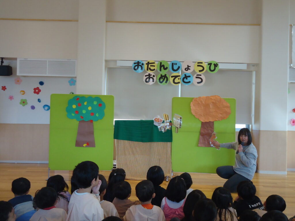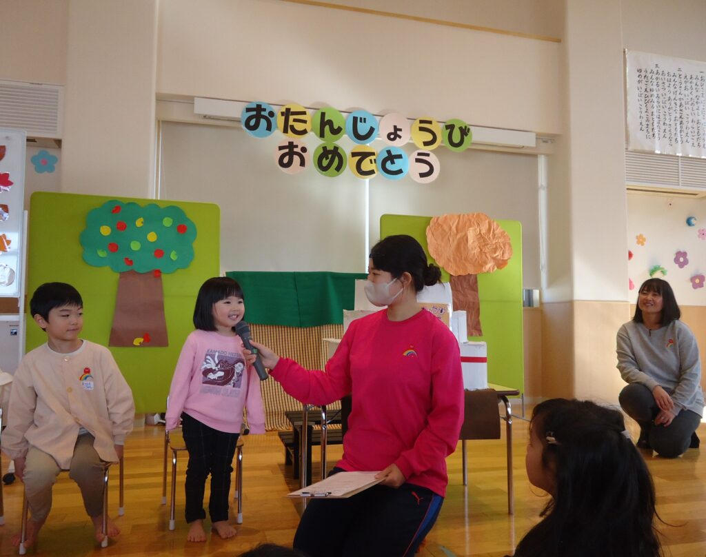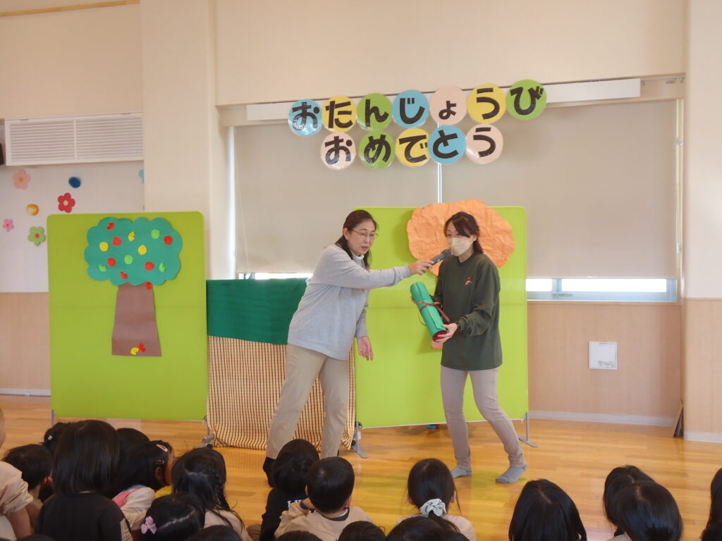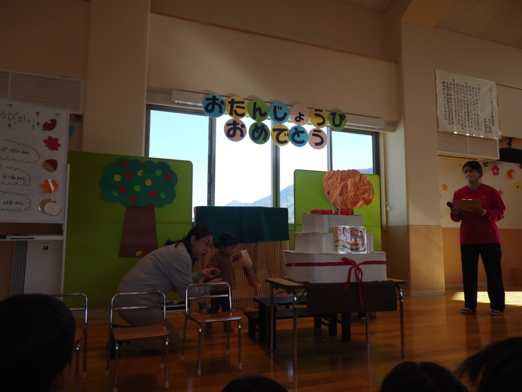 11月14日(火)にお誕生日会がありました。1歳児、2歳児クラスのお友だちはみんなからお祝いしてもらい
