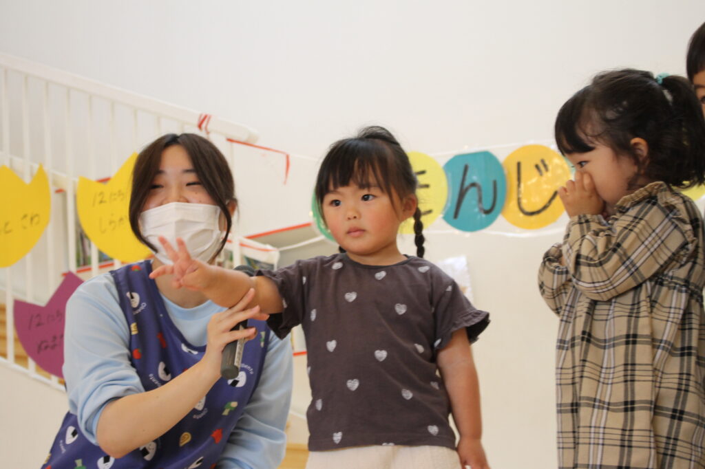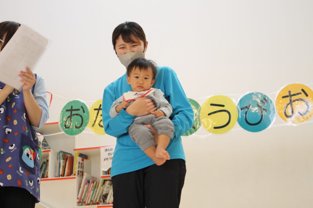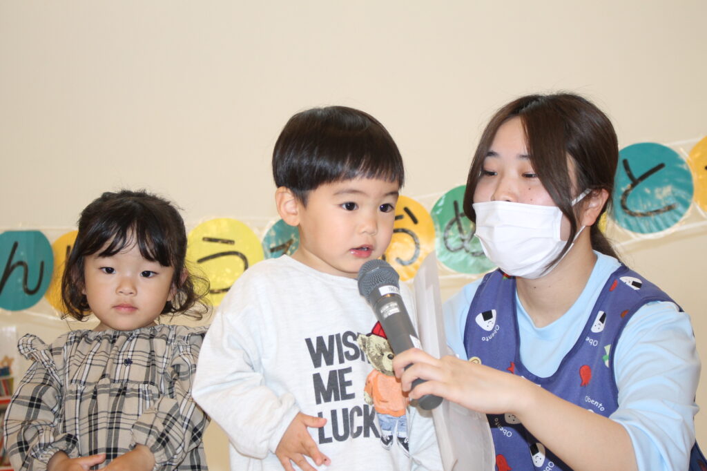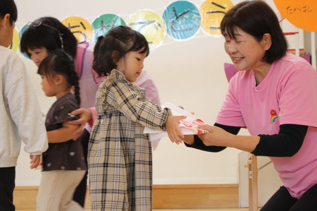 園長先生からプレゼントをもらい、最後はみんなで「♬幸せなら手をたたこう」の歌にあわせてゲームをしました。
