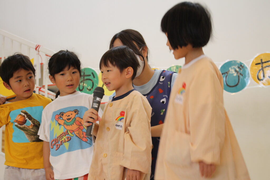 一人ずつインタビューをして、名前と年齢、好きな食べ物や好きな給食などを教えてくれました(^_^)