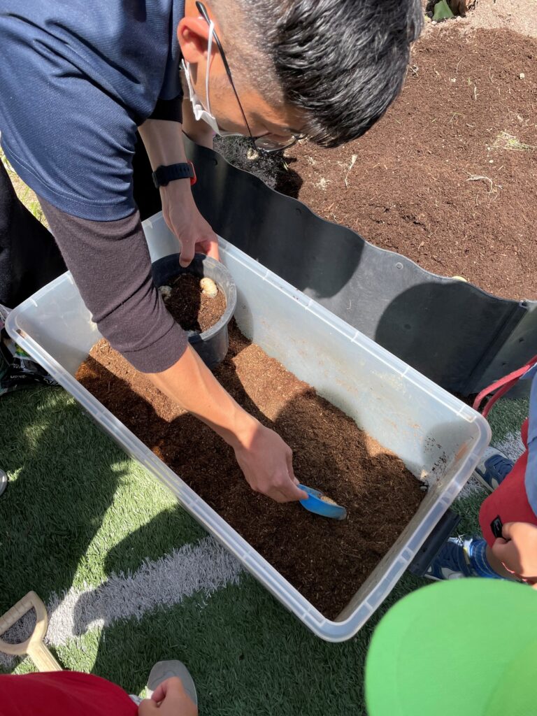 いままで住んでいた土から出してあげて、きれいな新しい土のおうちにいれてあげました!