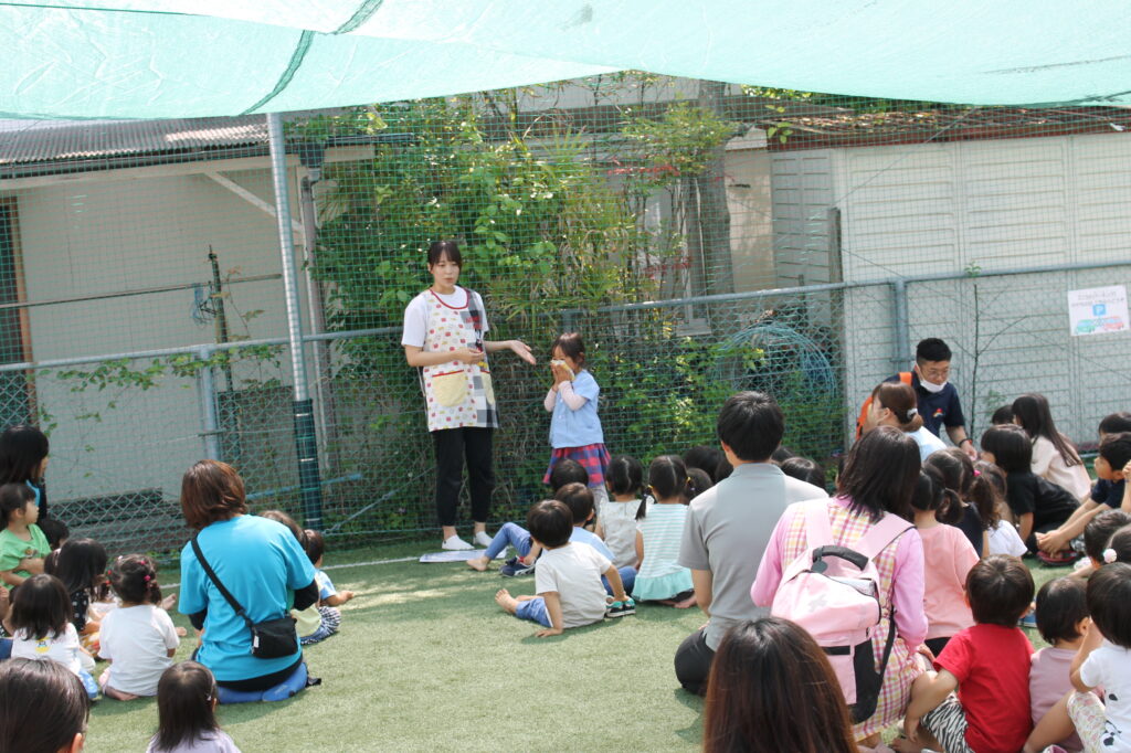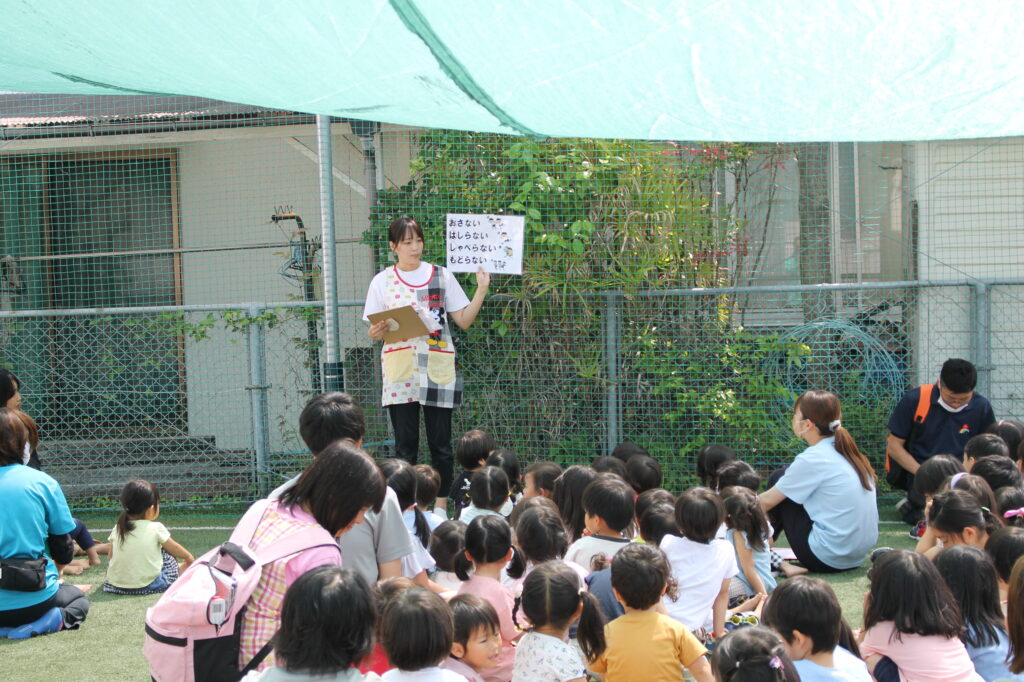 園庭に全員無事に避難することができました。