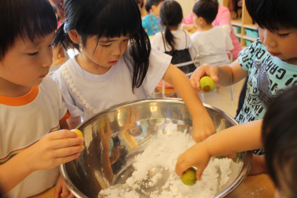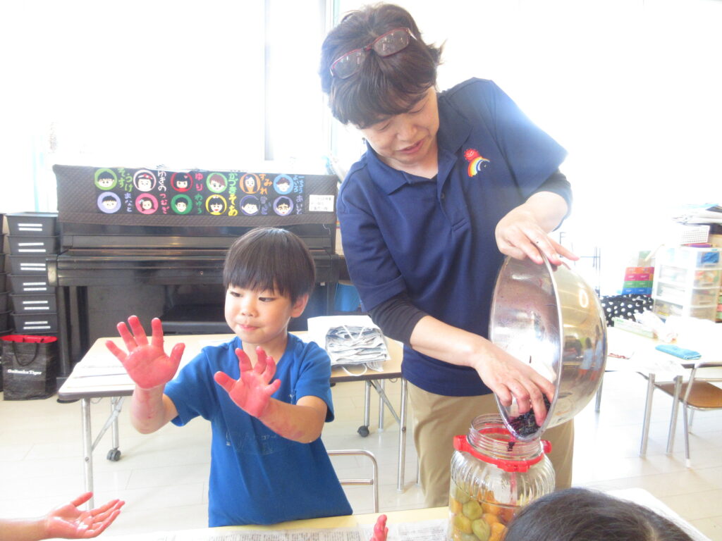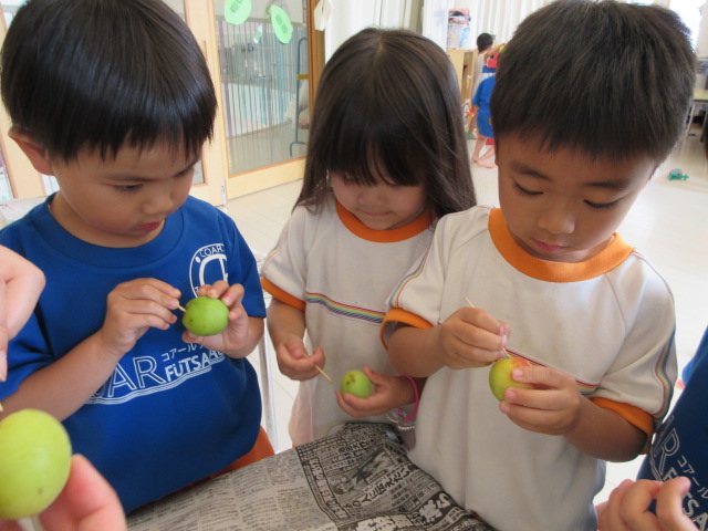 そして、その梅のへたとりをあかぐみさんがしました。