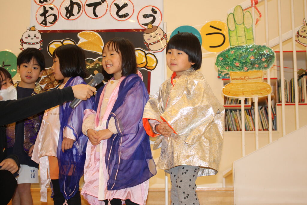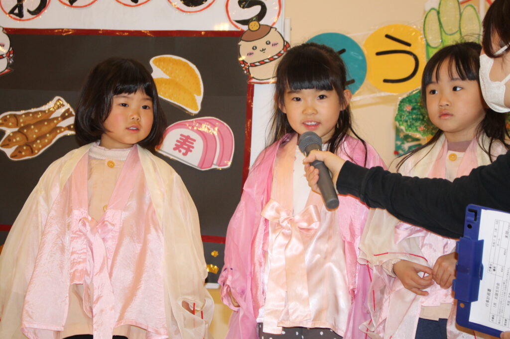 まずは、お誕生日のお友だちがおせち料理を1品ずつもって登場してくれました。