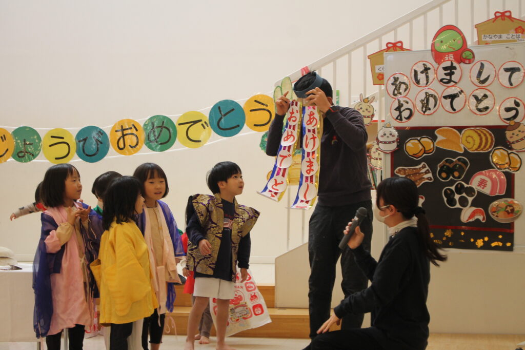 そして、一人ずつインタビューをして、園長先生からプレゼントをもらいました。