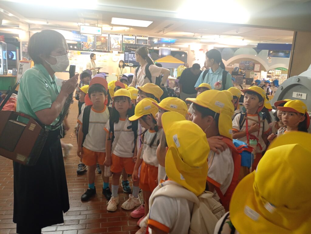 6月20日(金)に年長組さんがプラネタリウムへ見学に行きました。バスの中では「お星さま見るんだよね~?」