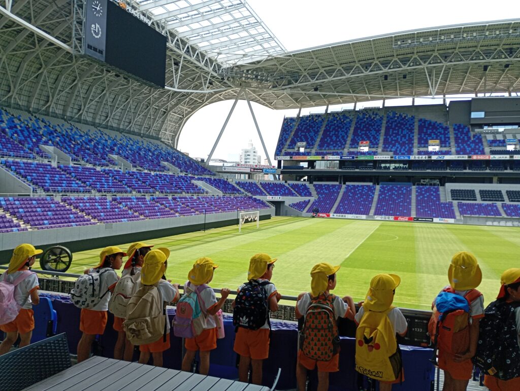 特別に見せてもらったスタジアムでは広くて綺麗なスタジアムに釘付け😲ゲルニカの絵に挑戦中のみんなは、「ゲルニカの絵にもこのスタジアムの絵、あるよね?」 など、ゲルニカの絵をまた描く時にしっかり描けるように目に焼き付けていました👏👏