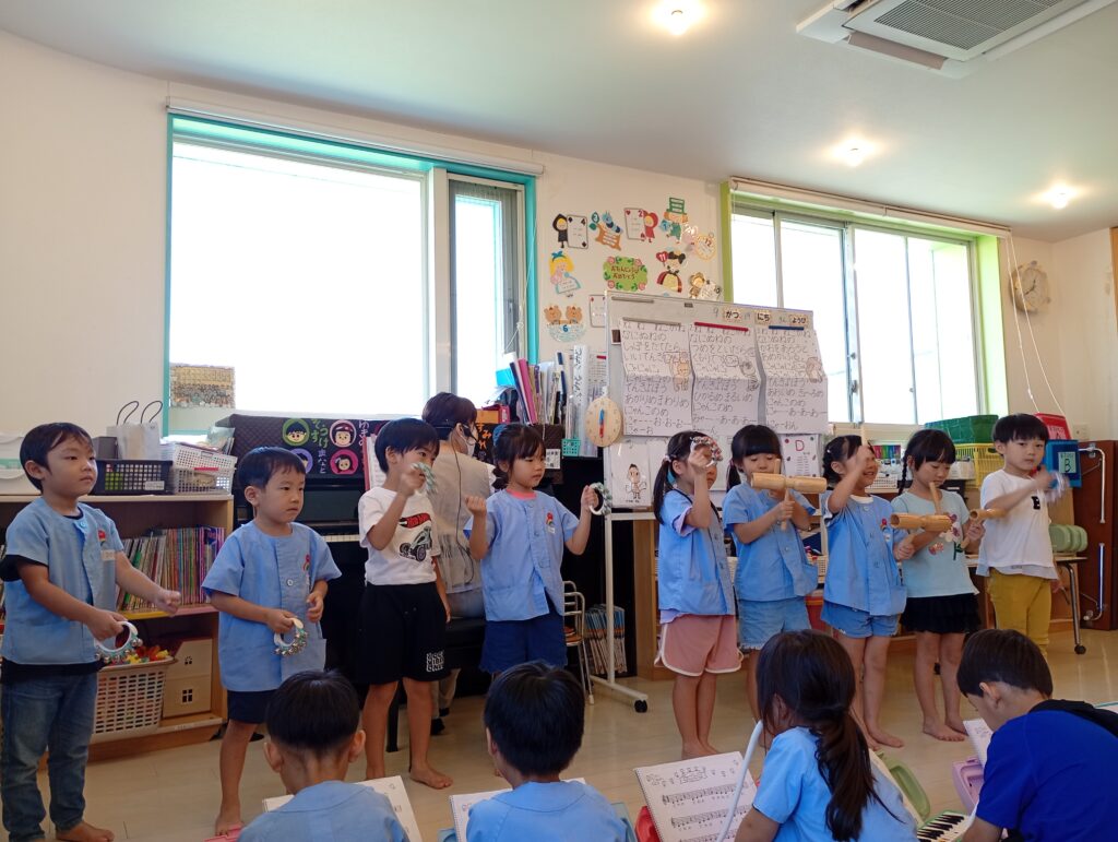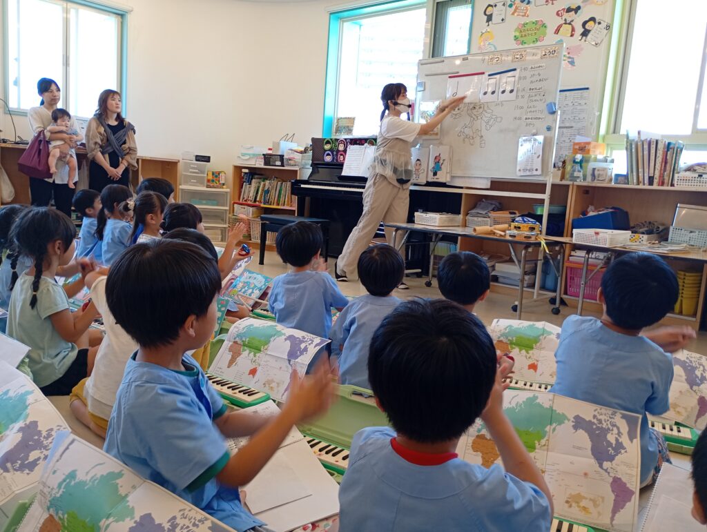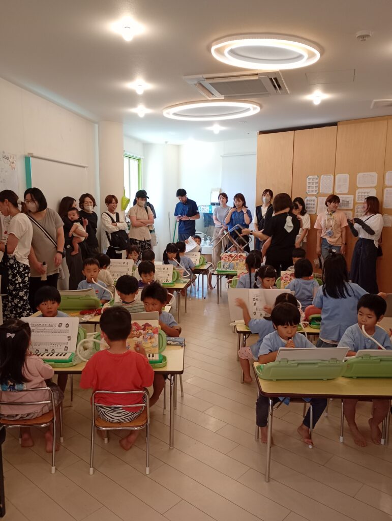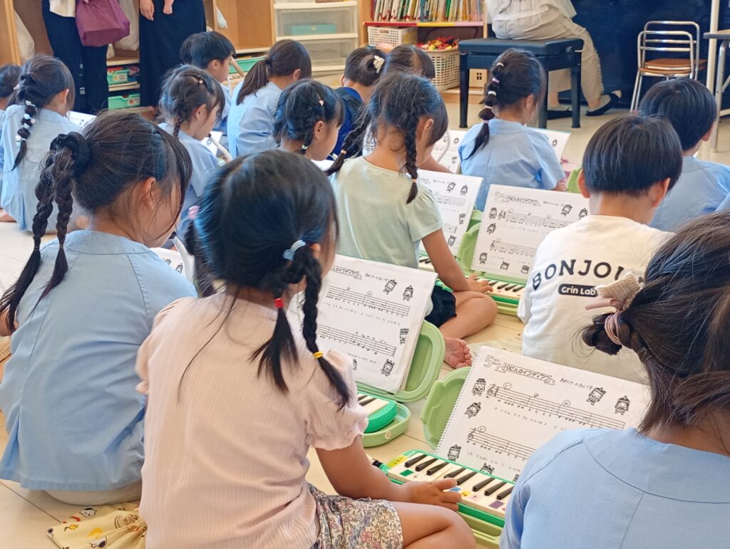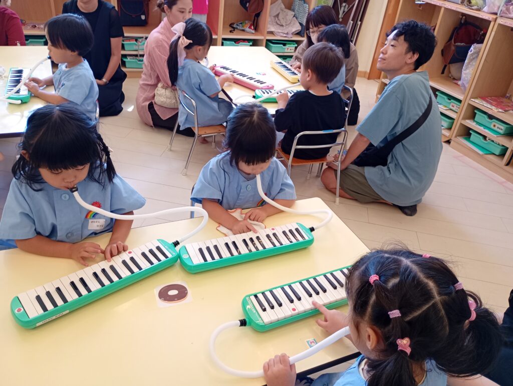 9月19日(金)の午後に幼児組さんの音楽参観日がありました。たくさんお家の方に来てもらい、子ども達もドキドキ・ワクワク💓そんな中、まずは年長組さんから、ピアニカの練習が始まりました。