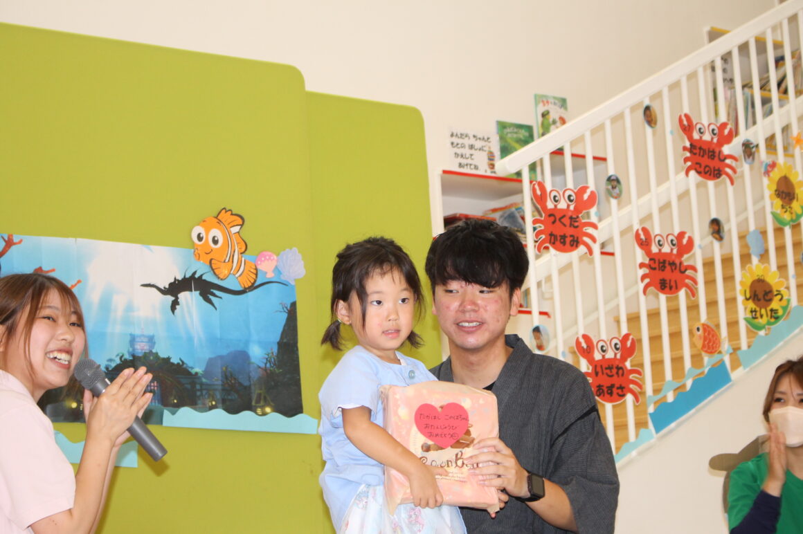 8月25日(金)の登園日に、お誕生日会を行いました(^^) 8月生まれのお友だちは、カートに乗って、「スイカ…