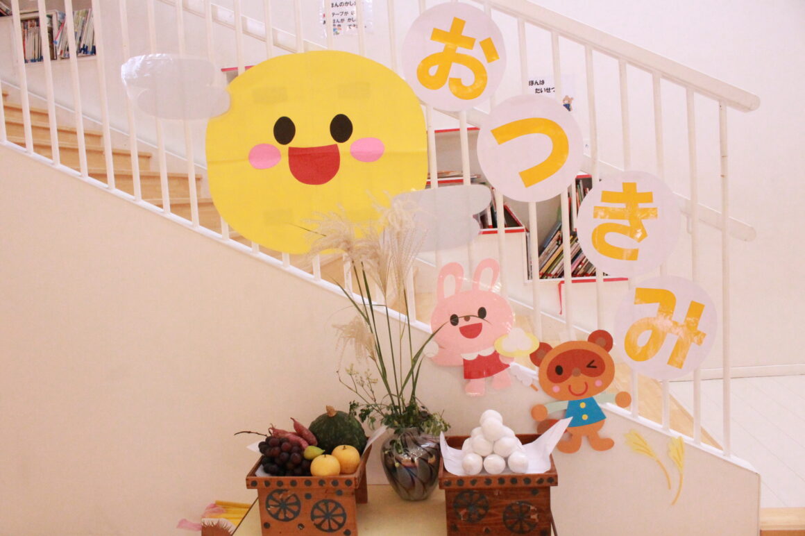 9月20日(水)にお誕生日会とお月見会を行いました。 まずは、9月生まれのお友だち登場~! あれれ?お顔が見…