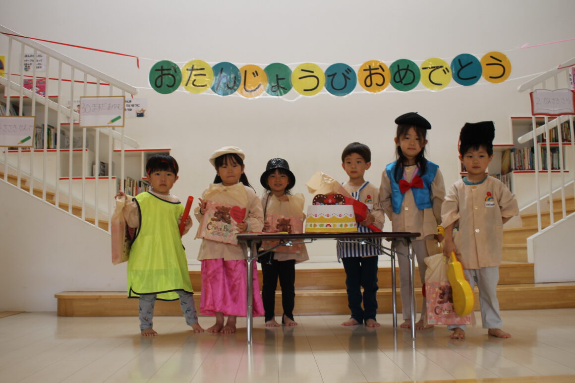 11月のお誕生日会のテーマは「秋」 さまざまな「秋」にちなんだ格好で登場してくれました! 「食欲の秋」「読書…