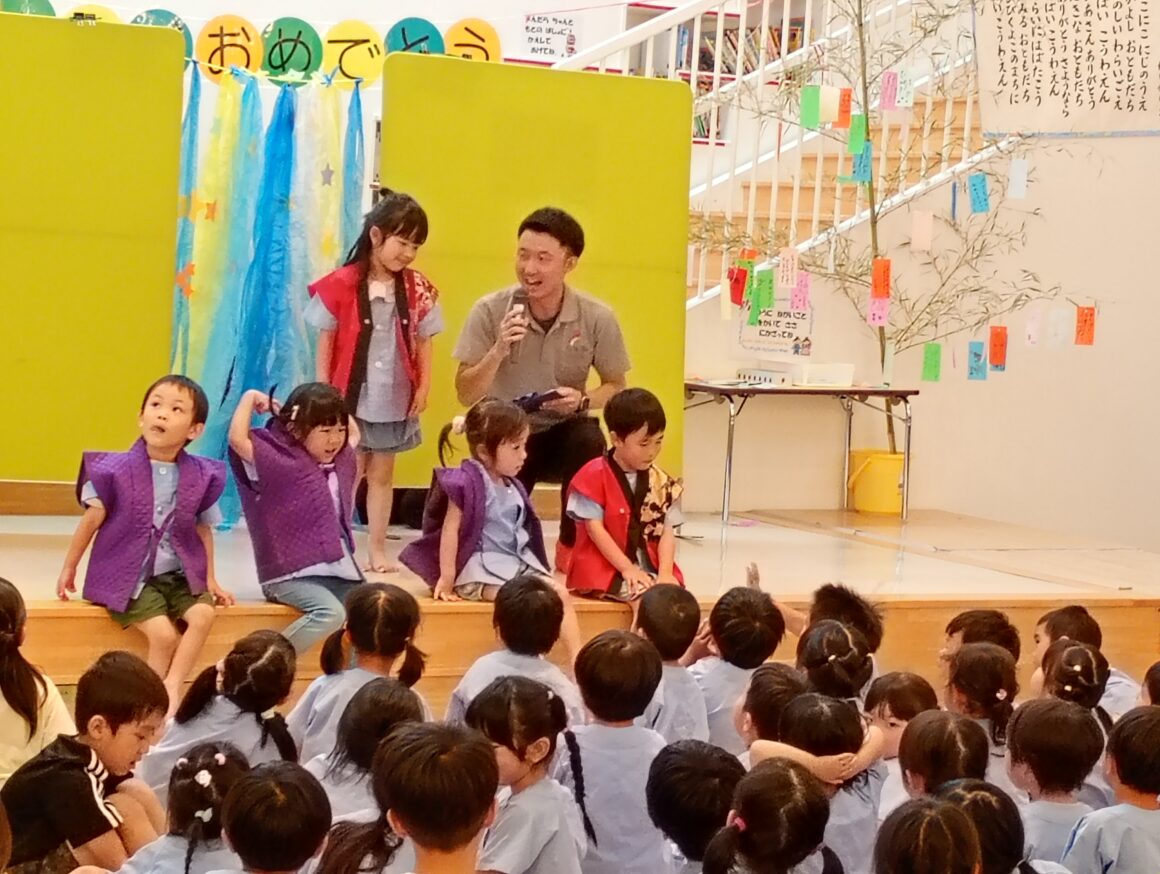 7月7日(月)に7月生まれのお誕生日会と七夕会がありました。七夕の日ということもあり、ホールには笹やみんなの…