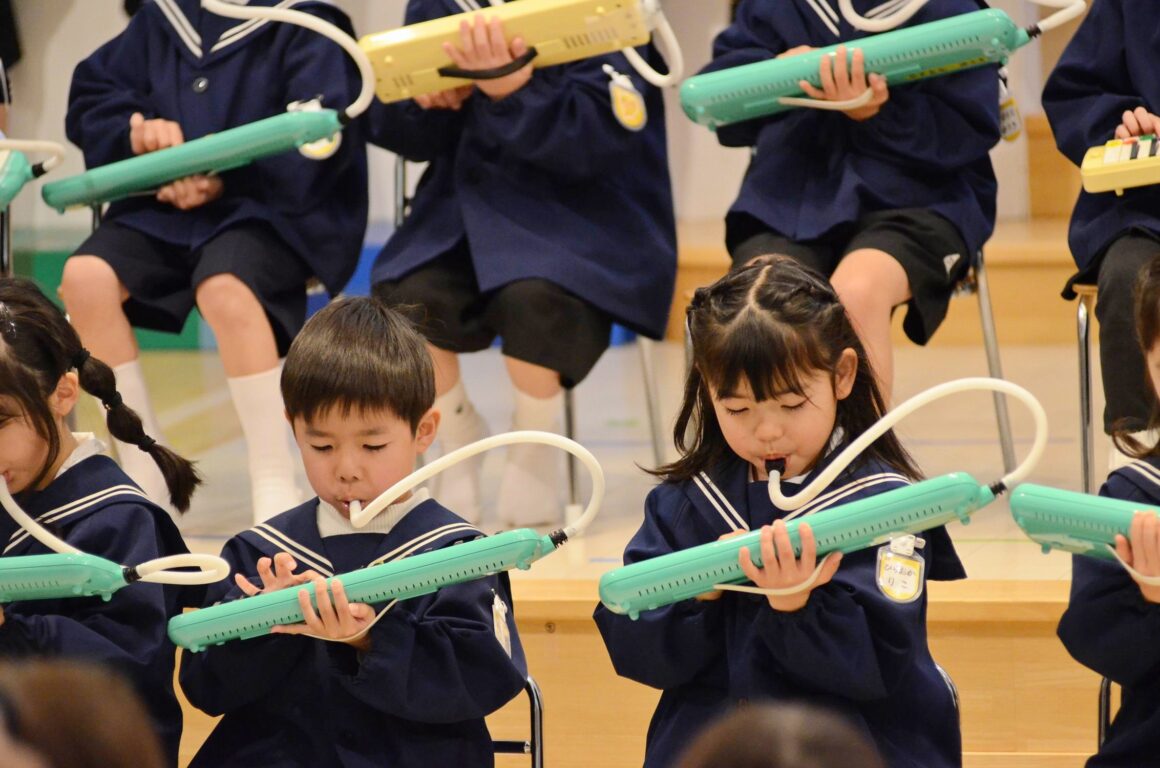 2月10日(土)におゆうぎかいを行いました! まずはじめはあかぐみさん♪ 歌「YUME日和」と合奏「ピクミン…