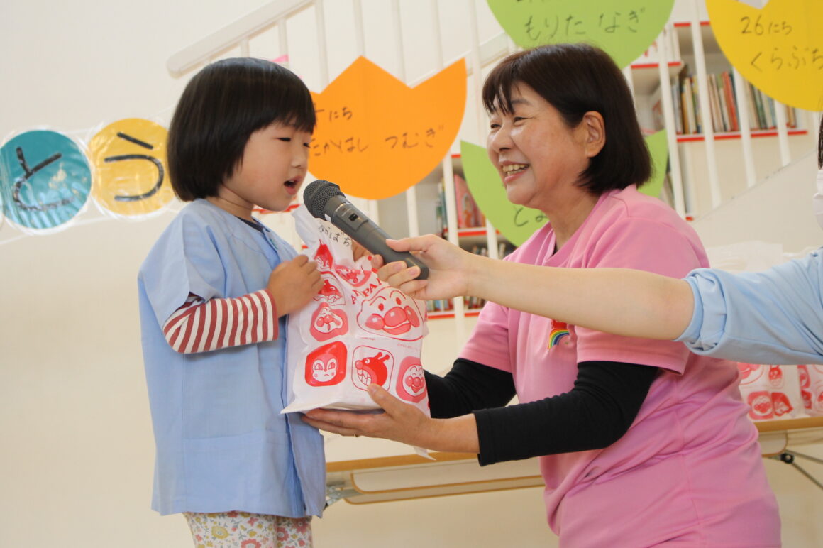 2月のお誕生日会を13日に行いました。 お誕生日のお友だちは元気に登場してくれました(^^) 一人ずつ園長先…