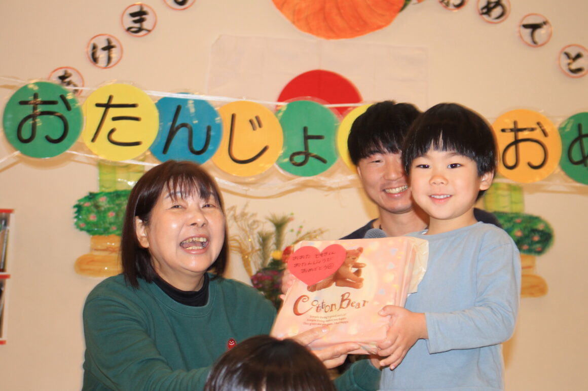 1月のお誕生日会と鏡開きをおこないました。 まずは、お誕生日のお友だちの登場です!(^^)! プレゼントをも…