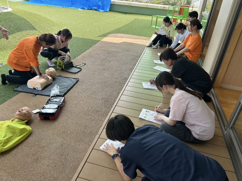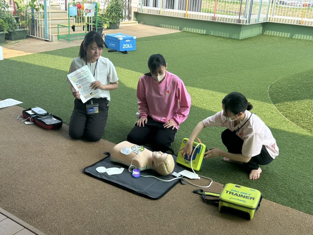 万が一の事態にも迅速に対応できるよう、心肺蘇生法(CPR)やAEDの使用方法を改めて確認しながら実践しました。