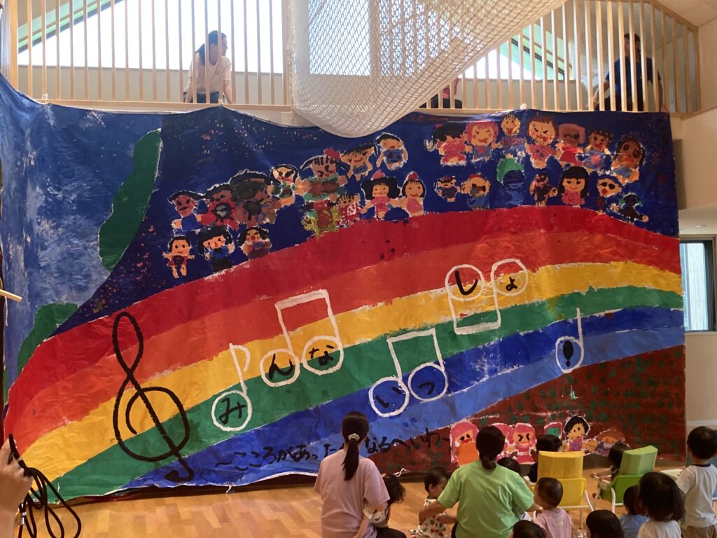 心をひとつに、全園児と職員で取り組んできたアート活動が、いよいよ完成の日を迎えました。