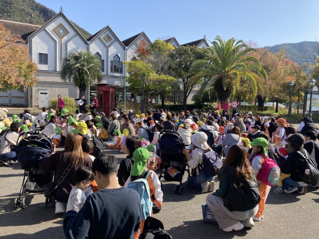 秋の青空が広がる快晴のもと、親子ふれあい遠足が行われました。行き先は「呉ポートピアランド」リュックを背負い、…