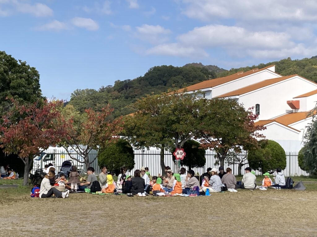 ランチタイムでは、クラスごとにまとまってシートを広げ、おうちの方が作ってくれたお弁当をお友だちと見せ合いながら美味しくいただきました(*^^*)