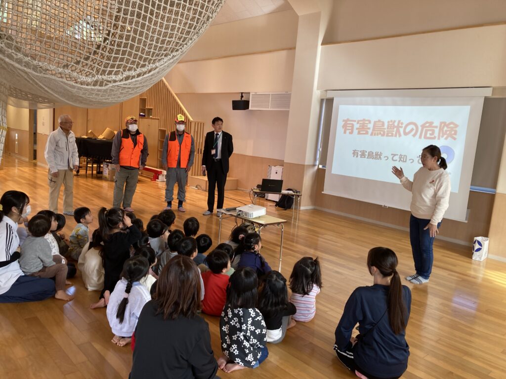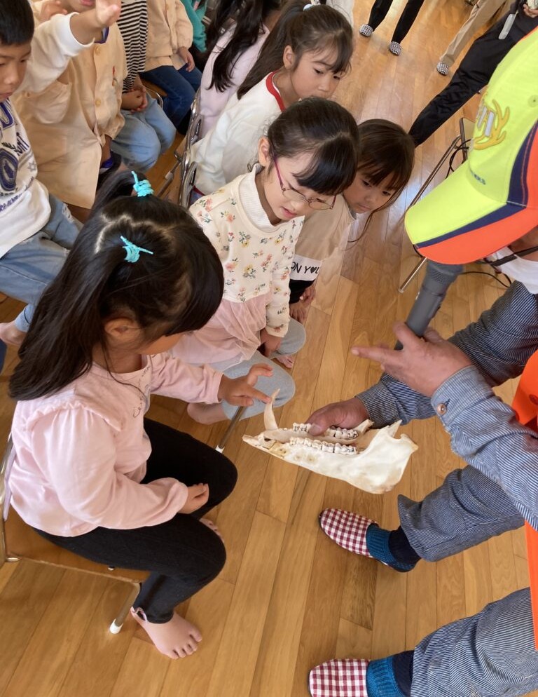 普段は動物園などでしか見られない動物たちですが、「もし山や畑で出会ったらどうする?」というお話になると、子どもたちは真剣な表情で耳を傾けていましたよ。