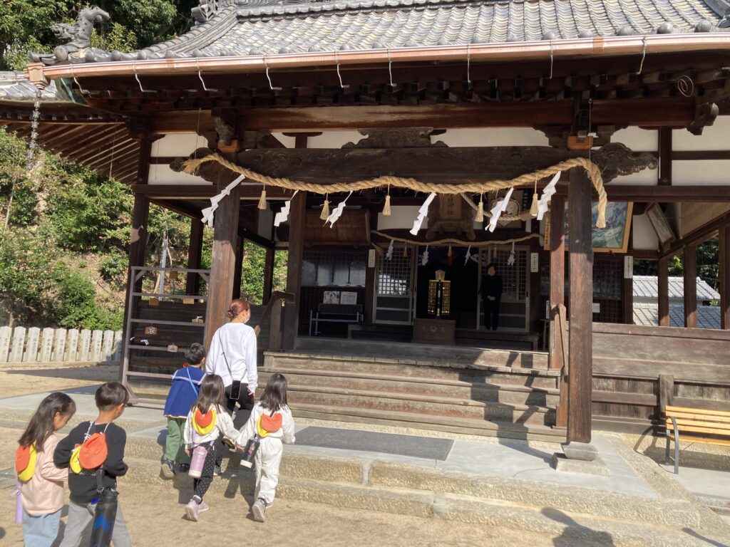 子どもたちが自分の足で神社へ向かい、自然や季節に触れながら行事の意味を体験的に感じられるようにしています。