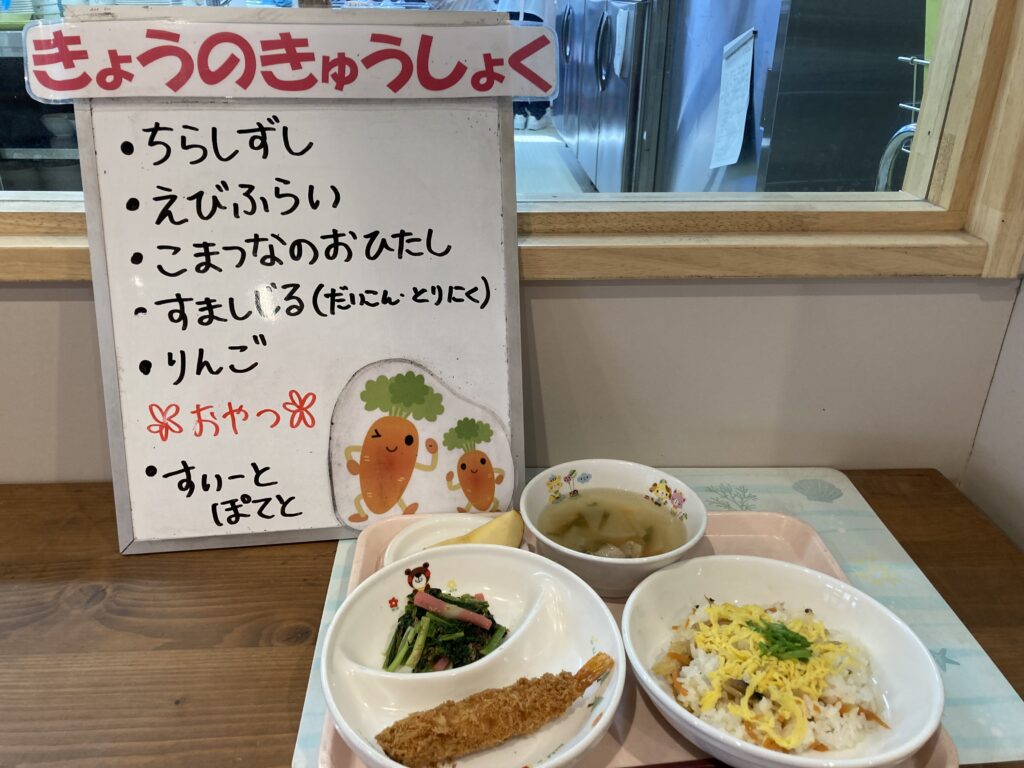 この日の給食は七五三に合わせた行事食として、色とりどりのちらし寿司をいただきました。